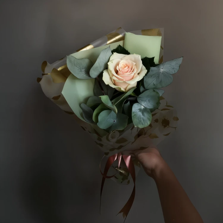 Изысканный букет из 1 розы в элегантной упаковке, который является воплощением сильной и чистой страсти. Эта одинокая роза сияет ярче звезд на ночном небе, приковывая взгляды и разжигая огонь любовных желаний. Ее нежные лепестки покрыты таинственным ароматом, который наполняет воздух романтикой, вызывая умиление и желание погрузиться в сладострастную мечту.