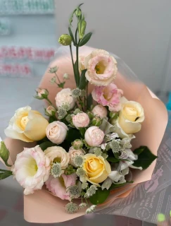 Букет "Символ любви" - великолепная композиция из микса нежных одноголовых роз, впечатляющих кустовых роз и изящных эустом, украшенных свежей зеленью. Этот букет олицетворяет великолепие природы, ее нежность и разнообразие. Прекрасная упаковка гармонично дополняет цветочное сочетание, подчеркивая его изысканный стиль. Благодаря этому изумительному букету вы сможете выразить свои чувства и создать впечатление неповторимого волшебства для вашего особого случая.